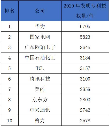 當然,這并非TCL的全部實力,TCL華星光電專利數量所代表的僅僅只是TCL全部專利中的冰山一角。在這一榜單的基礎下,根據Patentics、Joveeye、incoPat等多個權威平臺所發布的專利數據內容整合統計,“2020年國內企業發明專利授權量排行榜(TOP100)”新鮮出爐。