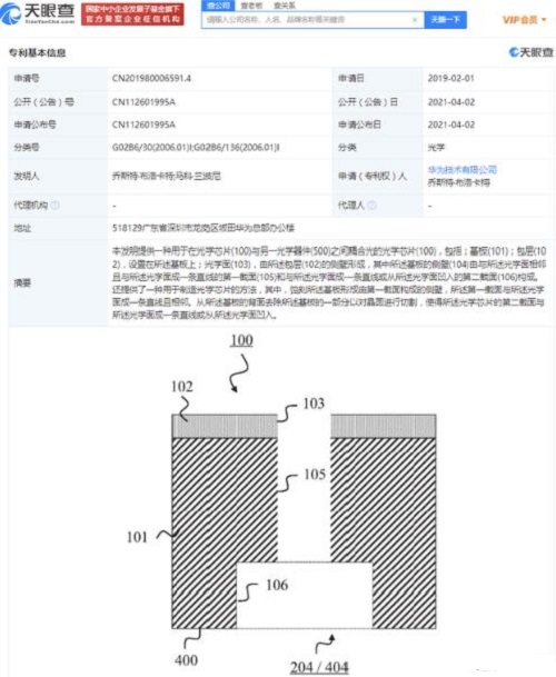 近日,華為技術有限公司公開一項名為“耦合光的光學芯片及其制造方法”的發明專利,申請日期為2019年2月,公開號為CN112601995A。該專利摘要顯示,本發明提供一種用于在光學芯片與另一光學器件之間耦合光的光學芯片,包括:基板;包層,設置在所述基板上。