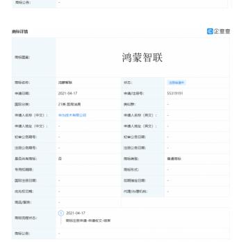 近日,華為技術(shù)有限公司申請(qǐng)注冊(cè)多個(gè)“HarmonyOS Connect”圖形商標(biāo)及“鴻蒙智聯(lián)”商標(biāo),新申請(qǐng)運(yùn)輸工具分類。企查查顯示,除此之外還申請(qǐng)分醫(yī)療器械、科學(xué)儀器等分類,目前商標(biāo)狀態(tài)均為商標(biāo)申請(qǐng)中。據(jù)悉,近日,華為已正式開通@華為HarmonyOS官方微博。
