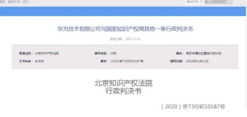 5月12日,北京法院審判信息網公開了華為技術有限公司(以下簡稱“華為”)與國家知識產權局的相關判決書。判決書顯示,華為的訴訟請求被法院駁回。