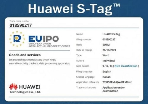 據外媒消息報道,2021年10月28日,華為向歐盟知識產權局申請了“華為S-Tag”的商標。