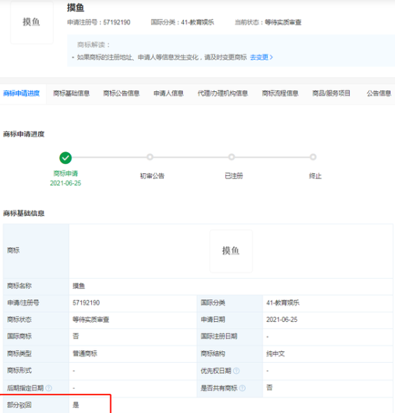 近日,北京有竹居網絡技術有限公司申請注冊的多個“摸魚”“去摸魚”“來摸魚”商標,流程狀態變更為“駁回通知發文”,商標國際分類包括教育娛樂、科學儀器等。股東信息顯示,該公司由字節跳動(香港)有限公司全資持股。