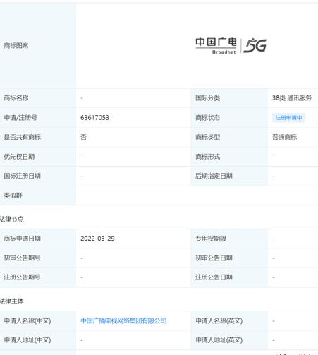 中國廣電5G商標(biāo)進(jìn)入注冊申請階段