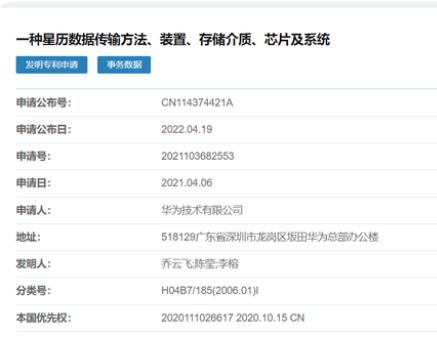 4 月 19 日,華為技術(shù)有限公司公開專利“一種星歷數(shù)據(jù)傳輸方法、裝置、存儲(chǔ)介質(zhì)、芯片及系統(tǒng)”,公開號(hào)為 CN114374421A。