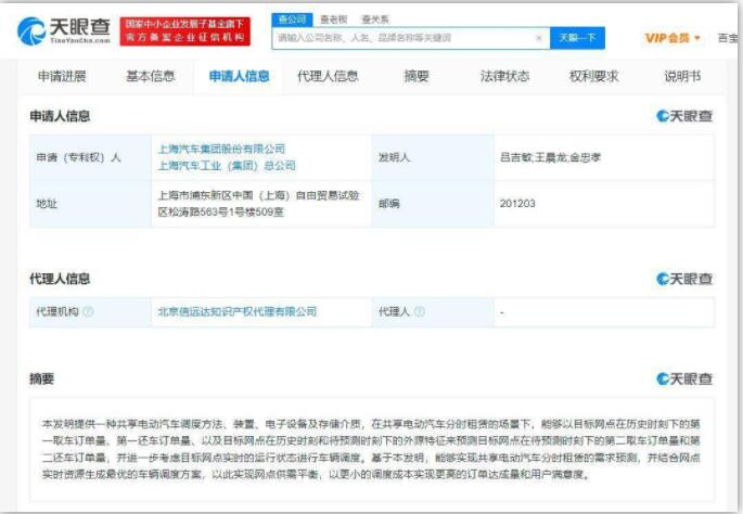 天眼查App顯示,近日,上海汽車集團股份有限公司、上海汽車工業(集團)總公司“共享電動汽車調度方法、裝置、電子設備及存儲介質”專利公布。