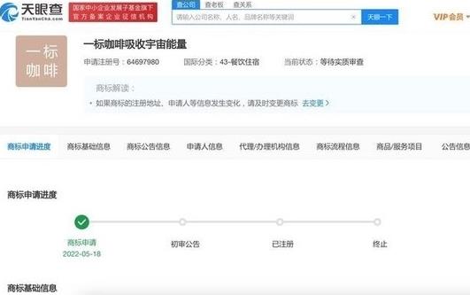 天眼查APP顯示,5月18日,華為技術(shù)有限公司申請(qǐng)注冊(cè)“一標(biāo)咖啡吸收宇宙能量”商標(biāo),國(guó)際分類為43-餐飲住宿,商標(biāo)狀態(tài)為等待實(shí)質(zhì)審查。