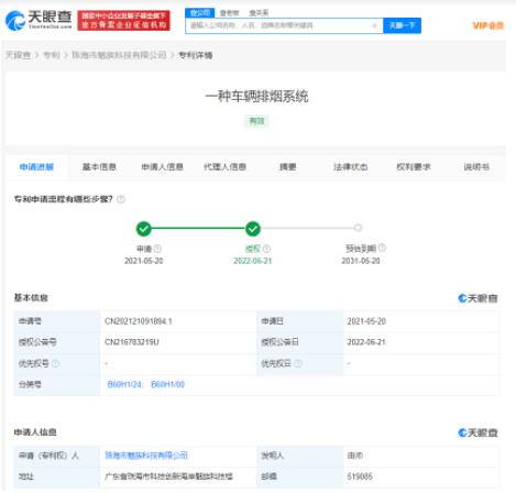 近日,珠海市魅族科技有限公司申請的“一種車輛排煙系統(tǒng)”專利獲得授權(quán)。