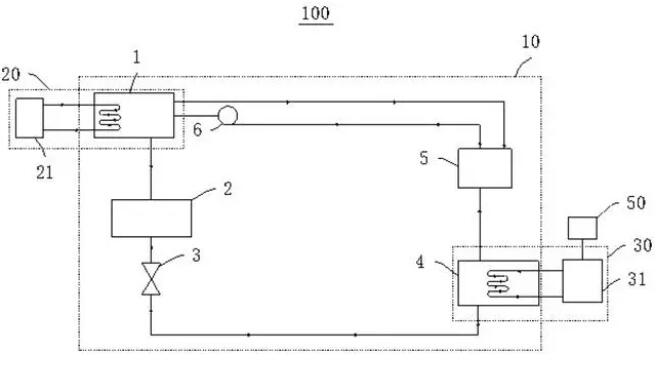 摘要顯示,本專利中車輛熱管理系統(tǒng)包括吸收式制冷系統(tǒng);第一熱管理部件用于調(diào)節(jié)發(fā)動機(jī)和/或電機(jī)的溫度,與吸收式制冷系統(tǒng)的發(fā)生器連接;第二熱管理部件用于調(diào)節(jié)動力電池的溫度,與吸收式制冷系統(tǒng)的蒸發(fā)器連接。第一熱管理部件為第一散熱盤管,該散熱盤管用于與發(fā)動機(jī)和/或電機(jī)接觸換熱。本申請實施例的車輛熱管理系統(tǒng)合理利用發(fā)動機(jī)和/或電機(jī)的熱量調(diào)節(jié)動力電池的溫度,提高動力電池的安全性能,提升車輛的續(xù)航里程。
