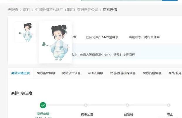 從天眼查了解到,中國貴州茅臺酒廠(集團)有限責任公司申請注冊多個圖形商標。據了解,上述圖形商標為古風漫畫人物和疑似靈獸形象,國際分類涉及酒類、廣告銷售、運輸工具等,當前商標狀態均為“注冊申請中”。