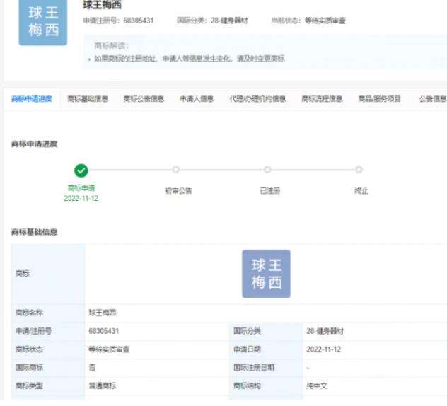 12月18日,在2022卡塔爾世界杯足球賽決賽中,阿根廷隊7比5戰(zhàn)勝法國隊,奪得冠軍,梅西榮膺本屆世界杯金球獎。梅西還當選2022年卡塔爾世界杯最有價值球員。相關(guān)信息顯示,2022年11月,“球王梅西”商標被佛山一家貿(mào)易公司申請注冊,但該商標申請于近日已被駁回。